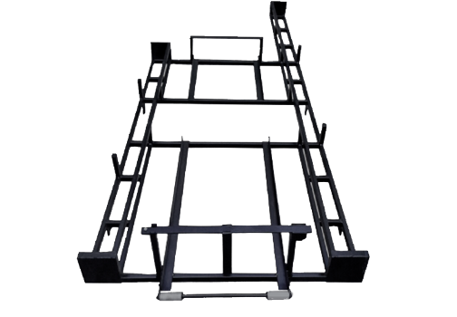 Modelo Parrilla para traslado de escaleras extensibles rectas de dos tramos, con rodillos traseros y trabaescalera con portacandado, además cuenta con 50 cm libre para traslado adicional según lo que el cliente necesite. Largo estándar 1.5 mts.